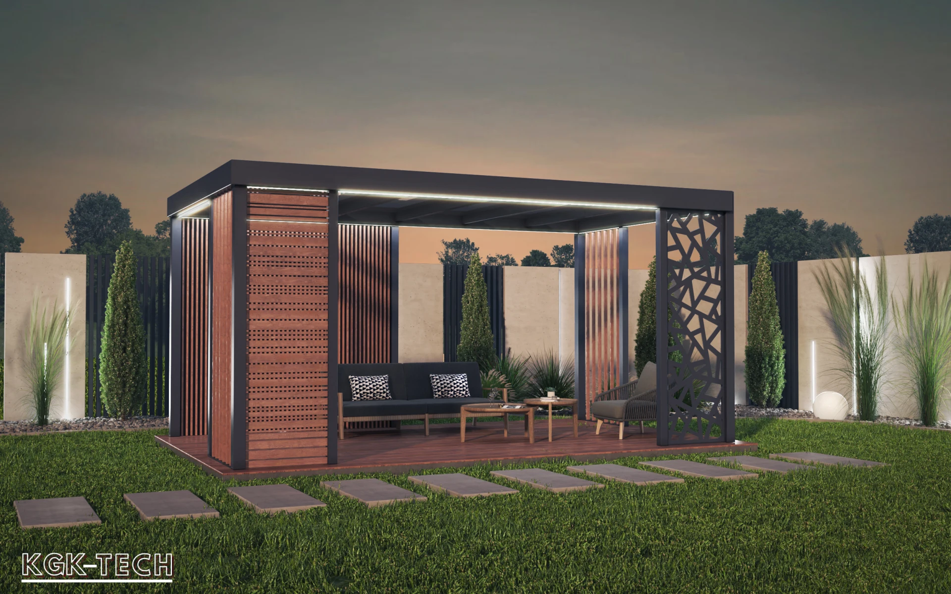 Pergole stalowe od KGK-TECH wyróżniają się nowoczesnym designem i wyjątkową trwałością. Stal, z której są wykonane, jest odporna na korozję i warunki atmosferyczne, co sprawia, że nasze pergole są inwestycją na lata. Dzięki zastosowaniu innowacyjnych technologii produkcji, możemy zagwarantować, że każda pergola spełnia najwyższe standardy jakości.